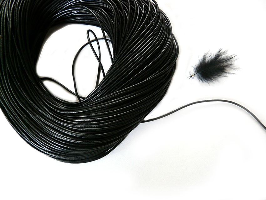 Cordon cuir de vachette Noir 1.5mm x 2 Mètres