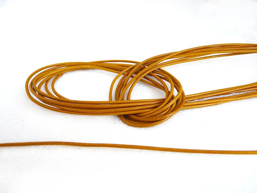 Cordon cuir de chevreau Jaune d'or 1.3 - 1.5mm x 105cm x 1
