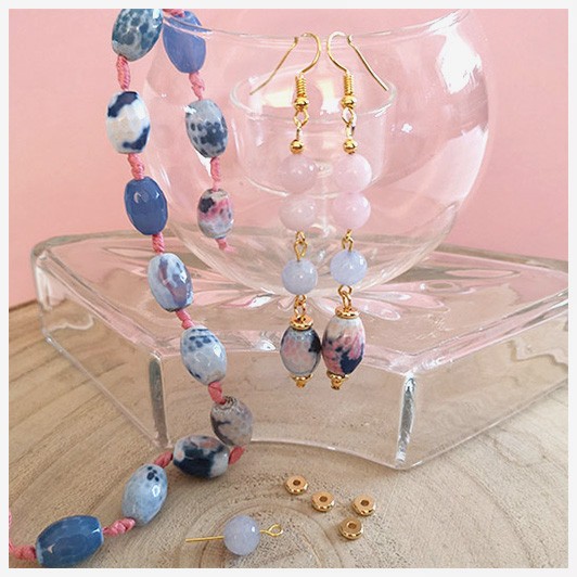 Chaque perle est différente, les lots sont composés aléatoirement de perles de couleur bleu et rose ou bleu majoritairement.