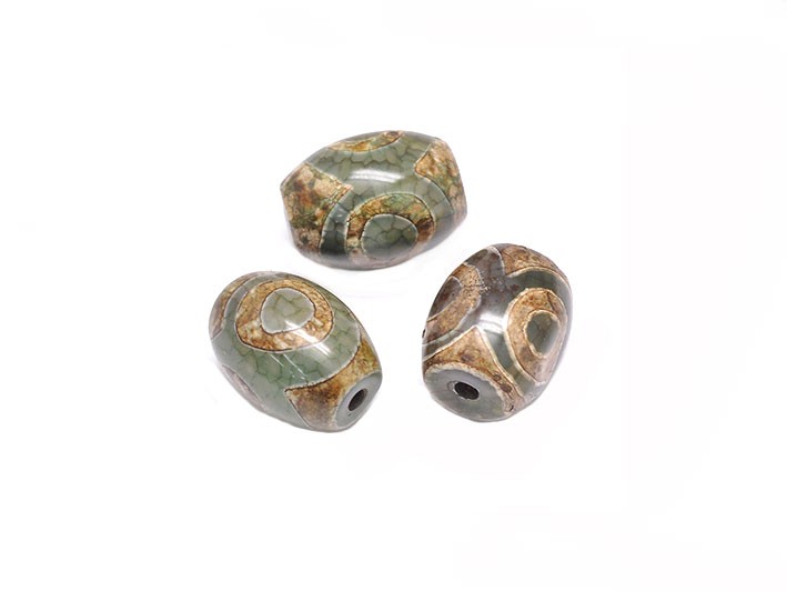Agate DZI olive 16x12mm 3 yeux vert-ocre X1