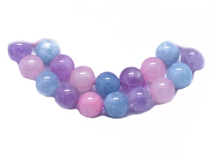 Perles gemmes améthyste- quartz rose- et aigue-marine naturelles teintées en mélange