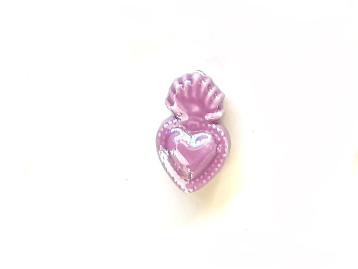Perle coeur Ex-voto 16x10mm en céramique-Violet x1