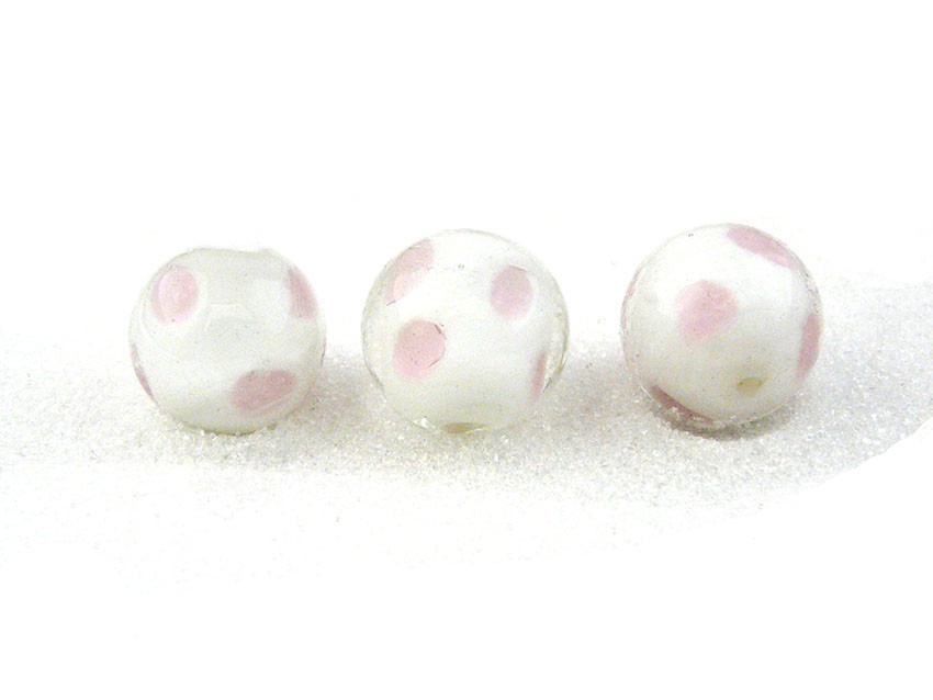 Verre 16mm blanc et rose à pois X1