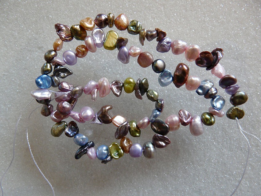 Perles d'eau douce keshi 5-9mm multicolores X demi rang