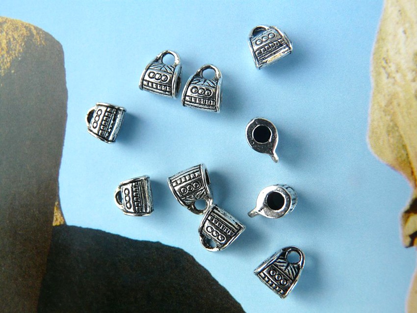 Bélière attache pendentif cordon 2mm argenté vieilli X10