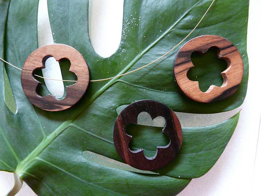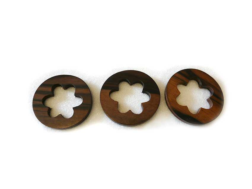 Grand disque en bois d'ébène ramagé intérieur évidé en forme de rosace
