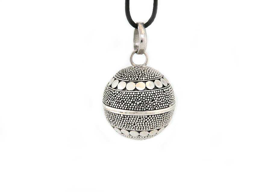 Traditionnel Bola de grossesse Indonésien en argent sterling 925, livrée dans une jolie boîte. Cordon réglable de 120cm offert. Perle intérieure sonore en laiton ou cuivre