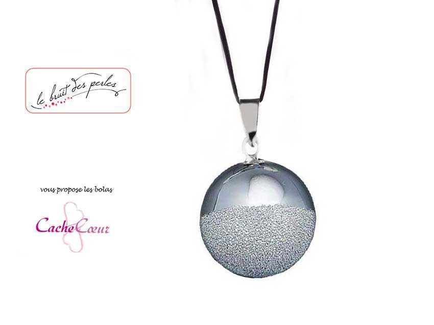 Il tient compagnie à un joli cordon noir terminé de deux petites perles anthracite, couleur du bola.