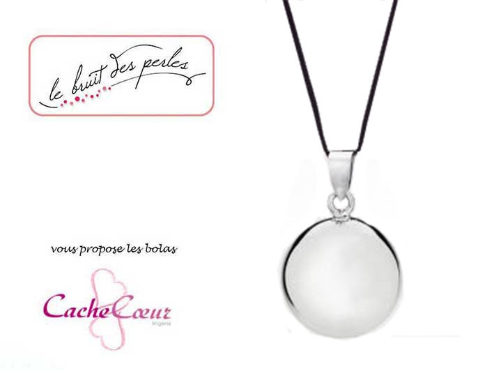 Bola de grossesse de 20mm, en rhodium accompagné d'un joli cordon satiné noir ajustable à votre convenance.