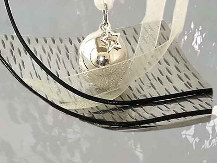 Bola de grossesse et ses trois rubans en organza ainsi qu'un cordon noir