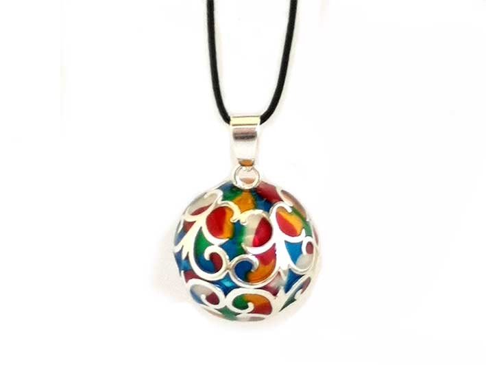 - Ce joli bola est un modèle qualitatif en émail multicolore sur fond de laiton argenté