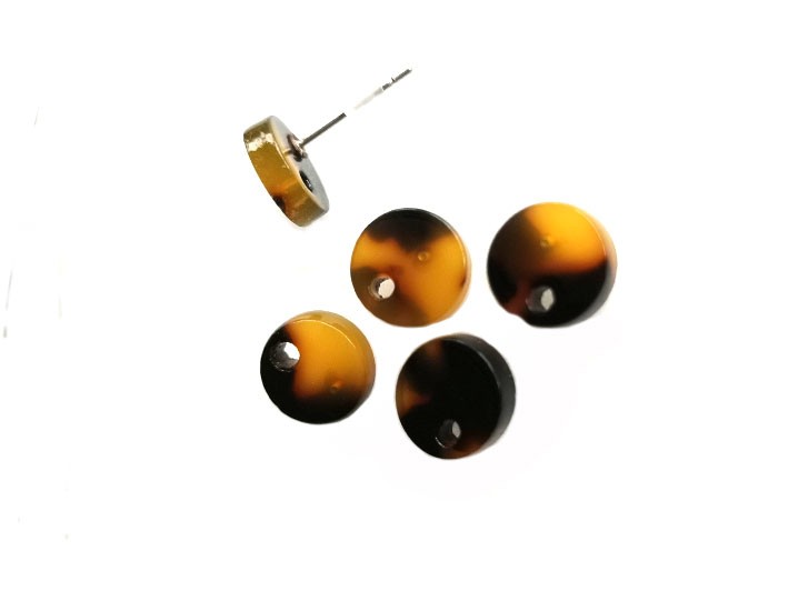 Clous d'oreilles 10mm en acétate -Tige inox 316-écailles-Marron x2