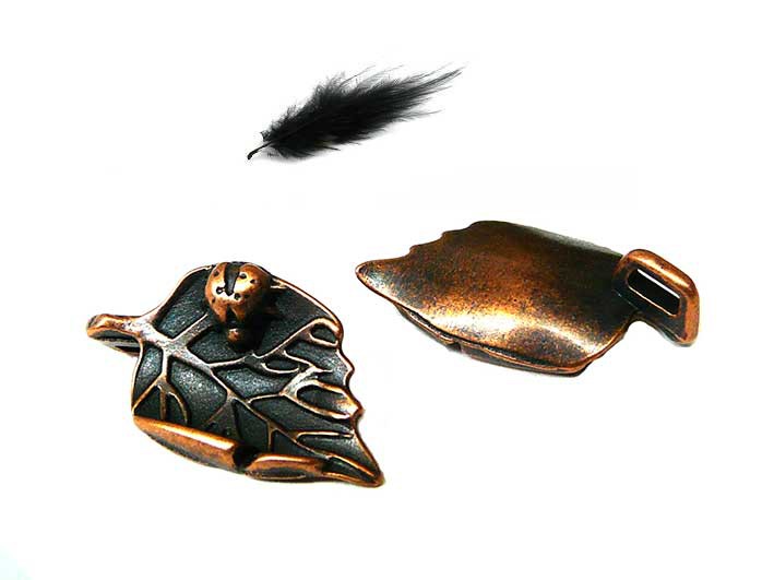 Breloque coccinelle sur feuille 23mm cuivré vieilli X1