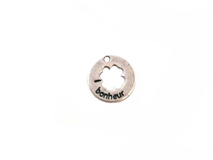 Breloque trèfle 4 feuilles 16mm + bonheur argenté x1