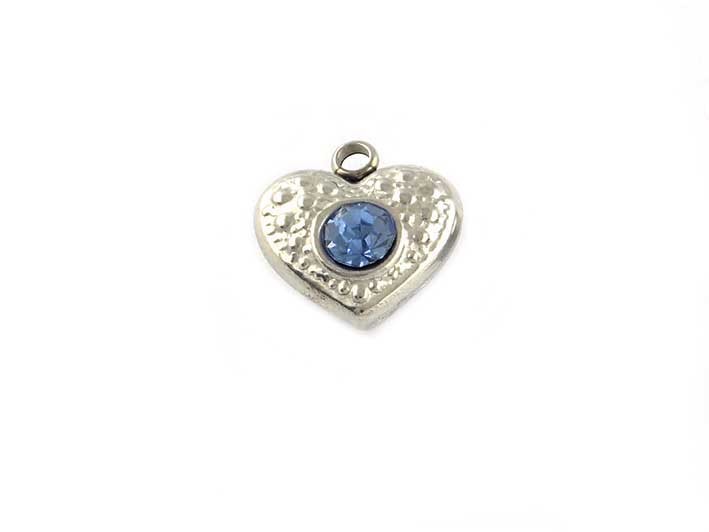 Breloque coeur et zircon 13x12mm acier inox-Bleu x1