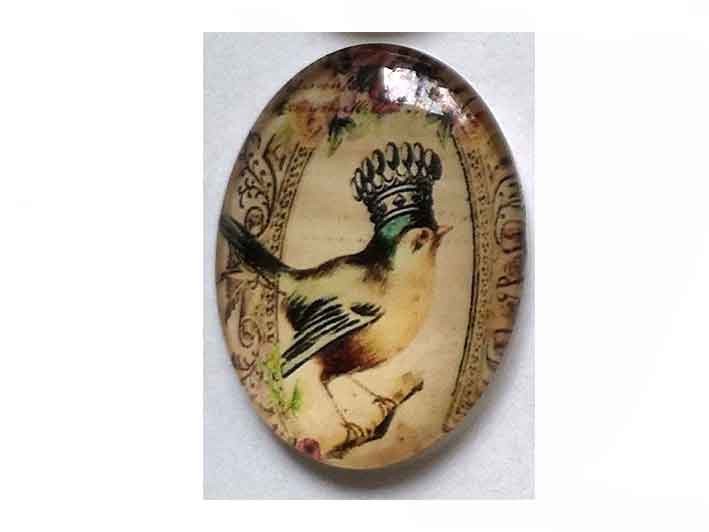 Cabochon l'oiseau roi en verre 40x30mm x1