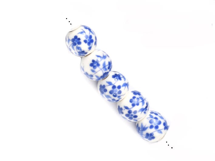 Perle 8mm en céramique-Feuillage-Blanc-Bleu x6