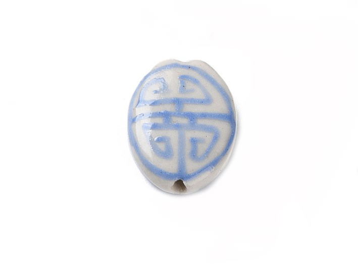 Perle plate en céramique décor écriture