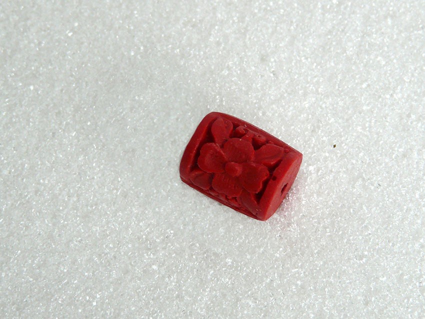 Perle 24mm x 22mm environ, en matière synthétique laquée, imitant le cinabre (minerai de mercure).