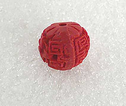 Perle en matière synthétique laquée, imitant le cinabre (minerai de mercure).