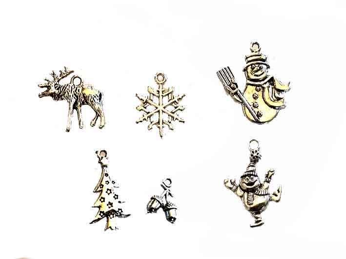 Ensemble de 6 breloques sur le thème de l'hiver, de Noël