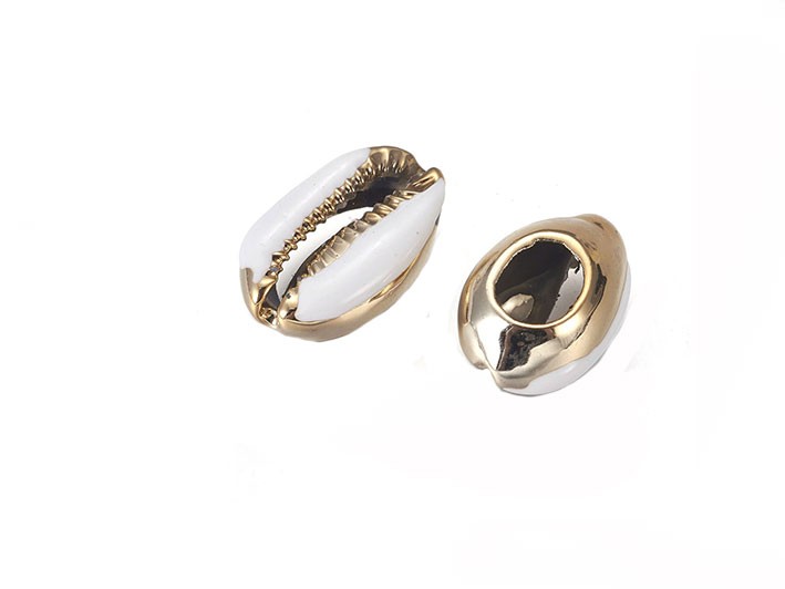 pendentif ou intercalaire coquillage cauri 17x12mm doré émail blanc x1