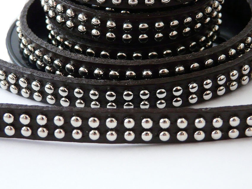 Cuir Plat 10mm brun clouté argent X 0.20M