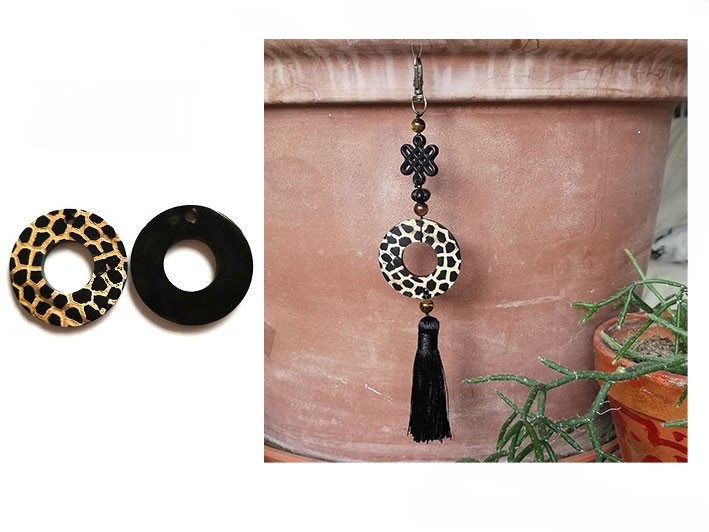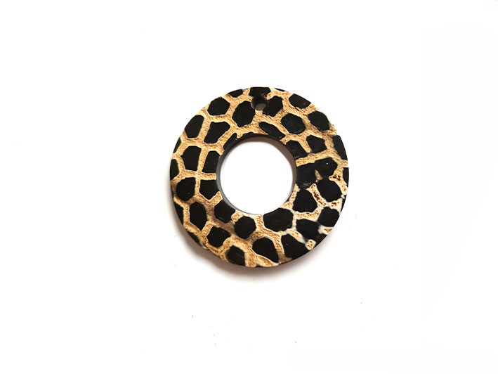 Pendentif ethnique rond en corne 48mm-motif Léopard Noir-Marron x1