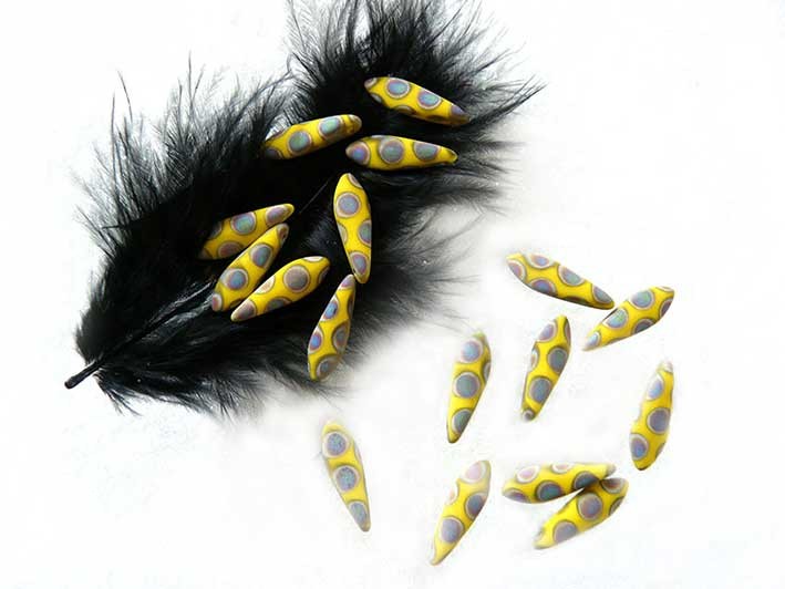 Dague en verre de Bohême 5 x 16mm JAUNE PEACOK opaque X10