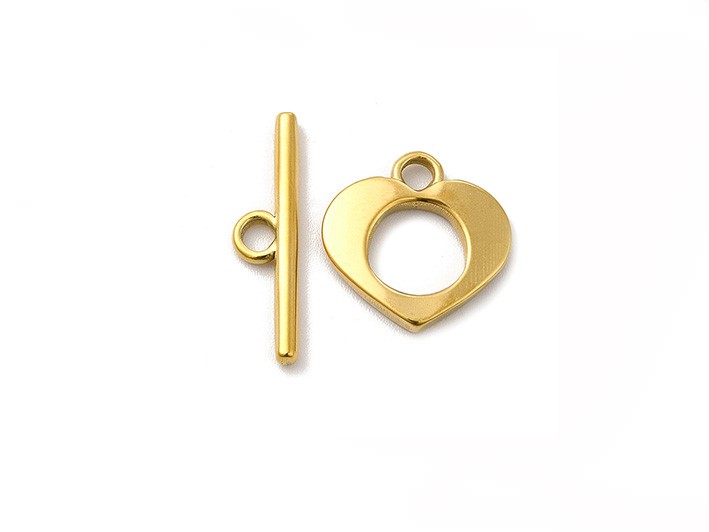 Fermoir T coeur 16mm acier inoxydable 304 doré X1