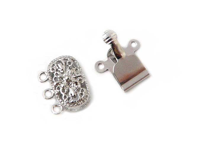 Fermoir à cliquet argenté 3 rangs 14 x 9 x 6mm X1