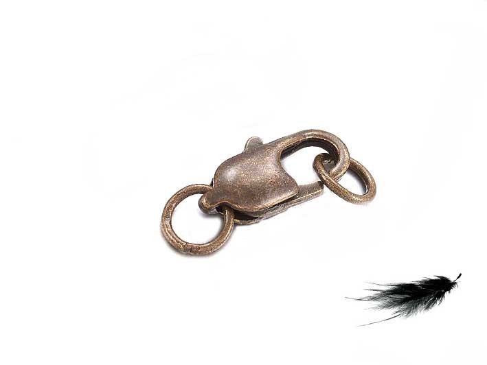 Fermoir mousqueton allongé avec anneau ouvert ou passage pour passer un fil directement