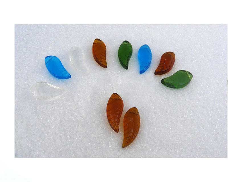 15 petites feuilles en verre transparent de couleur ocre clair-marron