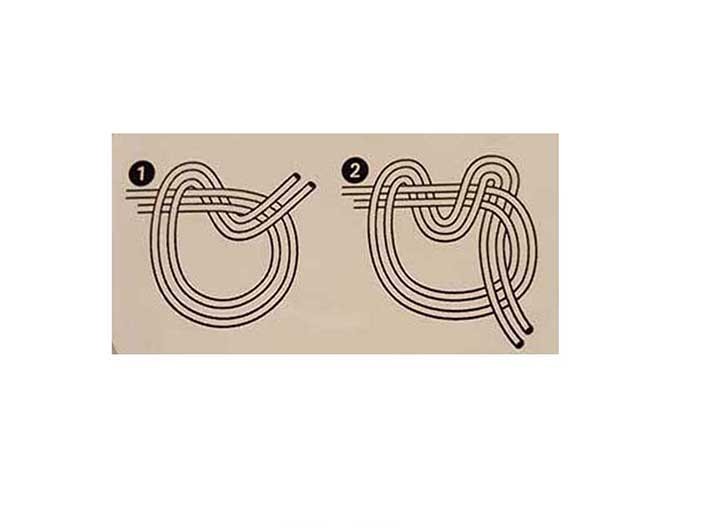 Pour réaliser un nœud solide, passez 2 fois le fil dans la boucle (photo n°2) puis tirez sur les extrémités des 2 fils. Renouvelez cette action une ou 2 fois. Pour une sécurité maximale, vous pouvez ajouter un point de colle hasulith dans les noeuds.
