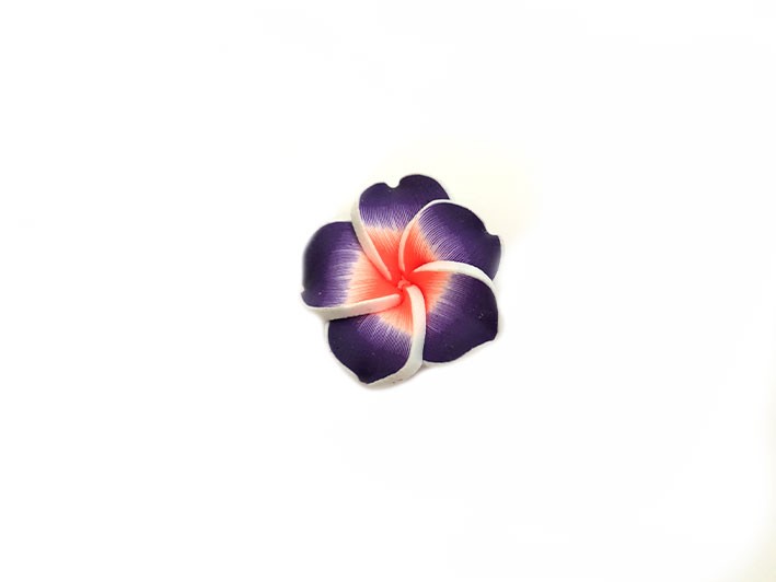 Fleur polymère de frangipanier 20mm violet et orange X 1