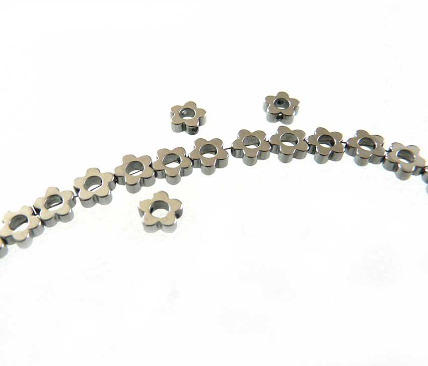 10 petites fleurs en hématite non magnétique,qui vous permettront de créer un bijou gracieux et féminin.