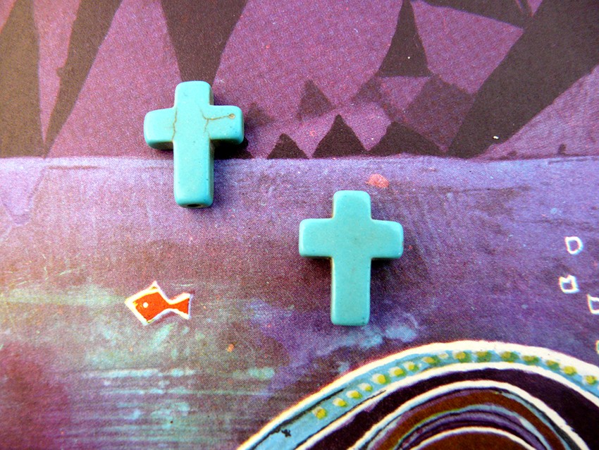 Perle en forme croix percée verticalement. hauteur 16mm largeur 12mm