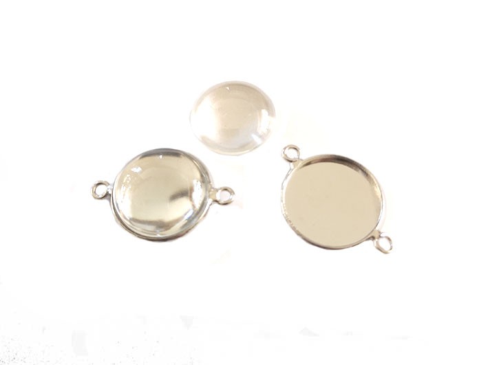 Médaillon rond connecteur 2 anneaux et son cabochon en verre bombé
