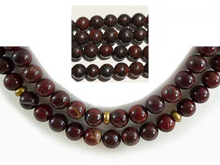 Le jaspe bréchique est un jaspe amalgamé naturellement dans la nature. Ses coloris sont chauds et assez sombres mêlés de rouge et de noir.