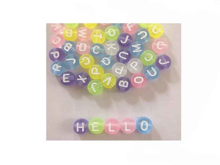 Perles rondes lettres alphabet 7mm mix pastel-blanc x160
