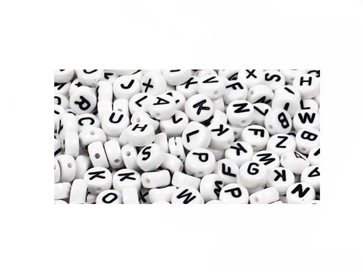 Perles rondes lettres alphabet 7mm mix blanc-noir x160