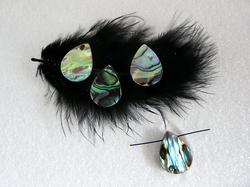 Perles de nacre naturelle d'Abalone, animal marin dont la face interne de la coquille est nacrée de tons irisés bleus, vert…