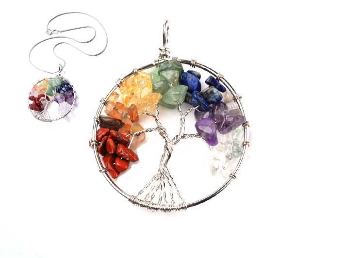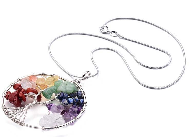 Collier Arbre de vie 7 chakras perles gemmes et chaine inox 316 X 1