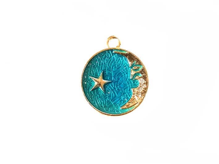 Grande breloque pendentif médaillon rond représentation de la lune et d'une étoile