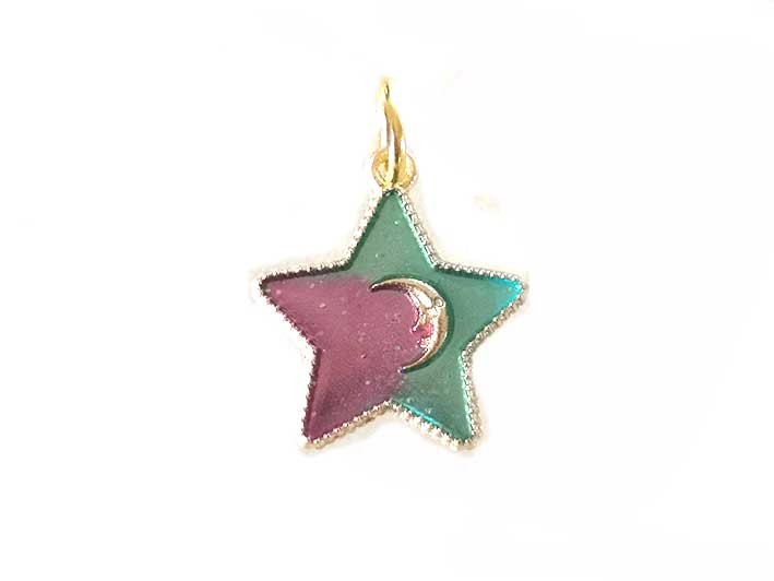 Pendentif étoile 23x20mm émail vert violet x1