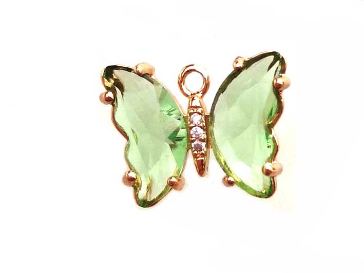 Pendentif papillon verre et zircons 15x20mm-doré-vert clair x1