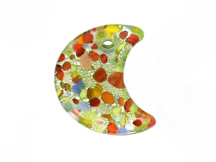 Lune en verre millefiori pendentif 43x31mm vert X1