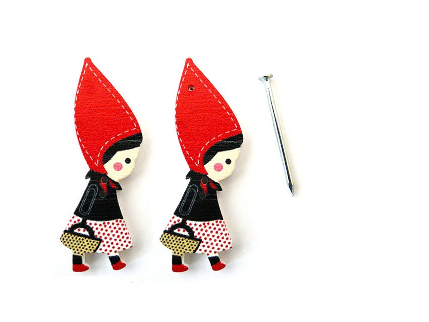 Petit chaperon rouge en bois , ornement de bijou, bouton à coller, à coudre etc .