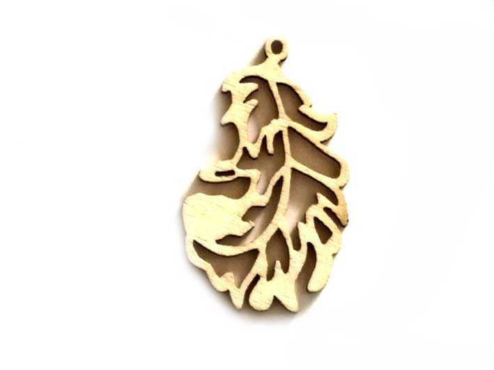 Pendentif feuille chêne bois 49x37mm x1