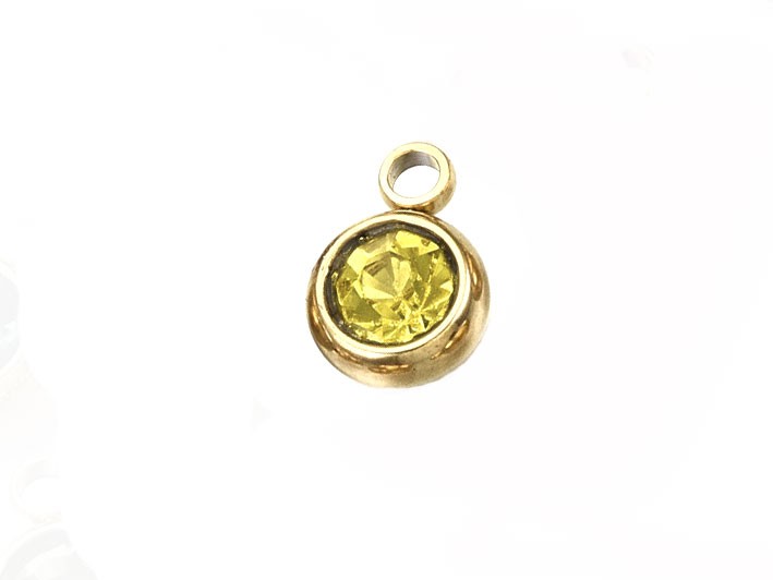 Breloque ronde 8x6mm-Acier inoxydable doré-strass jaune x1